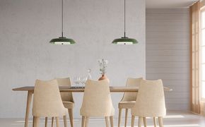 La collezione di lampade comprende lampade a Sospensione, da terra e da tavolo. Le lampade da terra e da tavolo utilizzano lampadine a LED sostituibili, mentre la sorgente luminosa della Lampade a Sospensione è integrata nella lampada. Tutti sono caratterizzati da un paralume ampio e di bella forma, che per ora è disponibile in un bellissimo colore champagne metallizzato con finitura opaca. Tuttavia, ora possiamo presentare la nota Lampada in una nuova edizione speciale con una superficie verde foresta lucida. La superficie lucida attira gli sguardi, mentre la tonalità tenue e profonda aggiunge sottilmente un bel gioco di colori. Questa variante è ideale per chi cerca il classico design nordico, ma in una variante colorata per dare un tocco personale agli interni.
