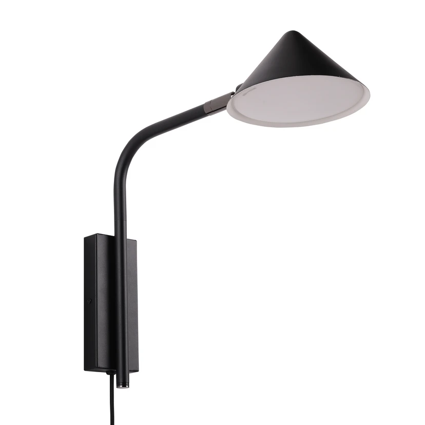 Dotata di una pratica spina, l'applique può essere posizionata in modo flessibile e collegata senza difficoltà. Un interruttore integrato consente un comodo comando e supporta sia un'illuminazione d'atmosfera che una luce funzionale. La combinazione di lavorazione di alta qualità, estetica essenziale e dotazione orientata alla praticità rende Kuro un elemento di illuminazione versatile per gli spazi abitativi moderni.