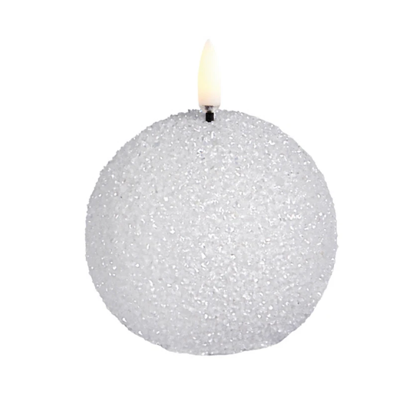 Candela LED ROUND, bianca, Ø 7 cm, glitterata - Uyuni Lighting
