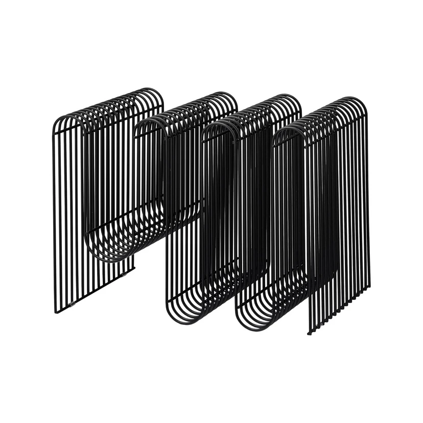 Il portariviste Curva Black offre una soluzione pratica per riporre riviste, libri, blocchi per appunti e opuscoli di ogni tipo. Il portariviste è costituito da barre d'acciaio che formano un motivo a onda che conferisce un aspetto morbido e dinamico al design complessivo. L'acciaio è stato sottoposto a una bella finitura che rende il portariviste facile da inserire indipendentemente dal concetto di arredamento esistente. In questo modo, il portariviste Curva si adatta a case classiche e moderne in corridoio, soggiorno, bagno e camera da letto.