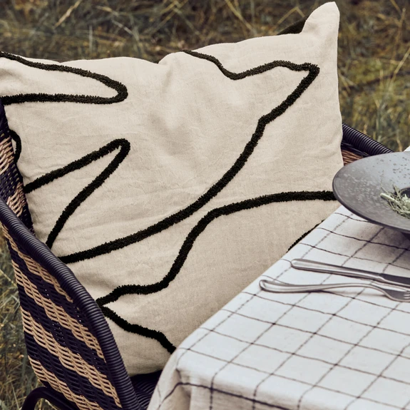 La fodera per cuscino HDFly unisce materiali di alta qualità come il cotone e il lino in un design armonioso, che affascina grazie alla combinazione cromatica ricca di contrasti tra il crema e il nero. La trama naturale dei tessuti garantisce una piacevole sensazione al tatto e conferisce all'ambiente un'atmosfera raffinata ma allo stesso tempo accogliente.