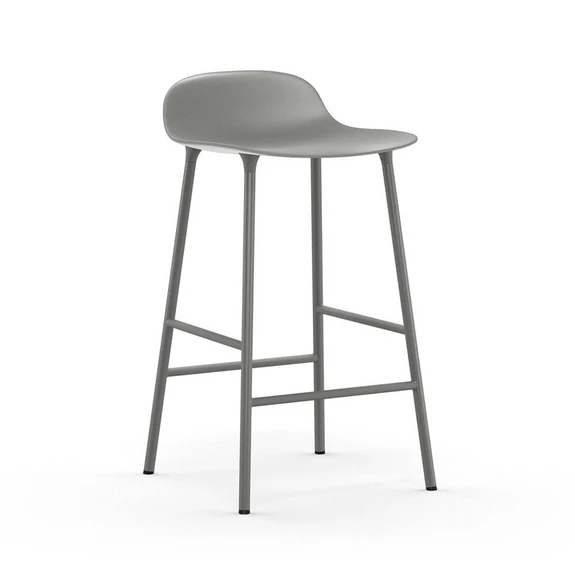 Lo sgabello da bar è realizzato in metallo e plastica, per garantire resistenza e leggerezza. La combinazione di colori grigio e nero conferisce alla sedia un fascino senza tempo, mentre la costruzione innovativa, in cui le gambe quasi crescono dalla seduta, crea un'estetica armoniosa e integrata. Questo rende lo sgabello da bar Form un mobile versatile che può essere adattato a diversi stili di interni.