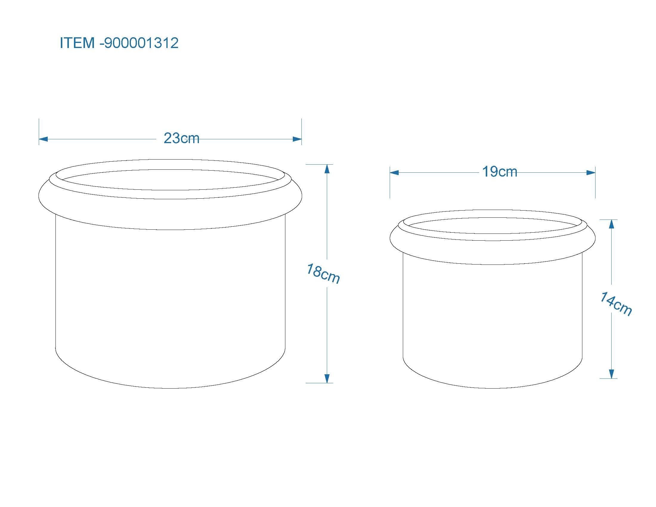 - vaso piccolo: altezza 14 cm, Ø 19 cm; vaso grande: altezza 18 cm, Ø 23 cm