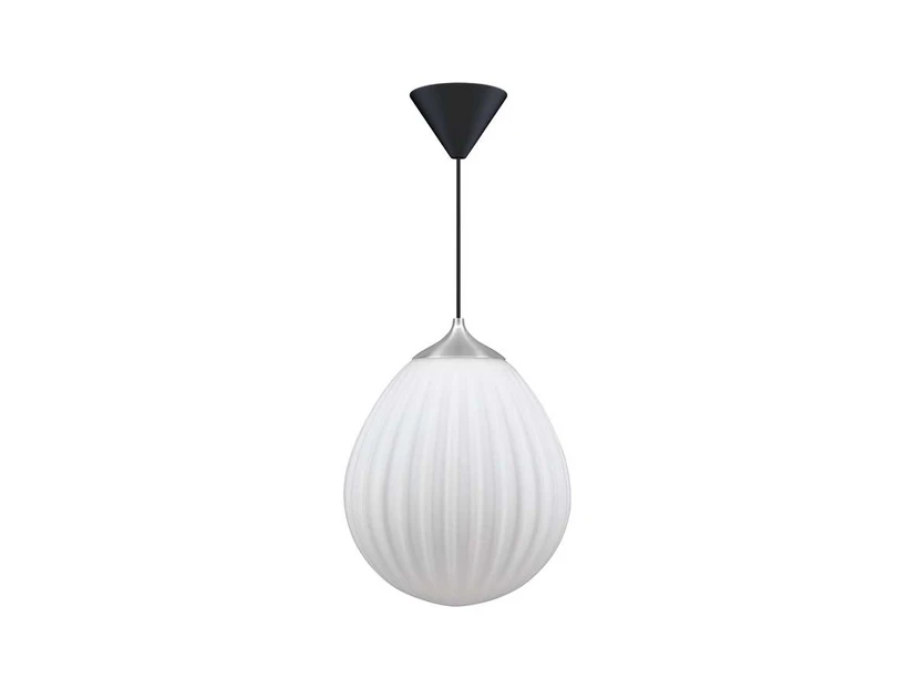 La lampada ha un paralume bianco latte opalizzato soffiato a mano e un bellissimo dettaglio metallico unificante che trattiene l'aria nella mongolfiera e aggiunge un ulteriore tocco di eleganza e design alla lampada. Utilizzate la lampada sopra il tavolo da pranzo, in soggiorno o in un angolo lettura