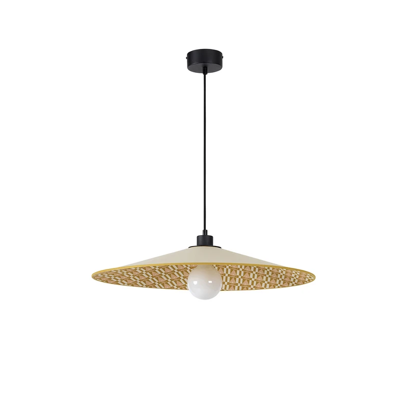 La lampada a sospensione Gatsby di MARKET SET unisce un'estetica elegante a una lavorazione di alta qualità. Realizzata con un'armoniosa combinazione di tessuto e metallo, con il suo design color crema all'esterno e decorato all'interno, dona un tocco di eleganza a qualsiasi ambiente. La lampada si integra perfettamente in diversi stili di arredamento ed è ideale per la sala da pranzo, il soggiorno o la camera da letto.