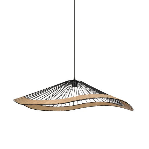 La lampada a sospensione Mekong unisce la robusta eleganza del metallo al calore naturale del rattan. La combinazione di metallo nero e rattan color naturale crea un effetto visivo armonioso che si integra perfettamente in diversi ambienti della casa, come il soggiorno, la sala da pranzo, la cucina o il corridoio.