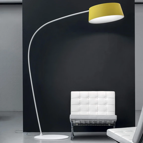 Lampada ad arco LED colorata Oxygen_FL1 con luce bianca calda e funzione dimmerabile per un'illuminazione personalizzata