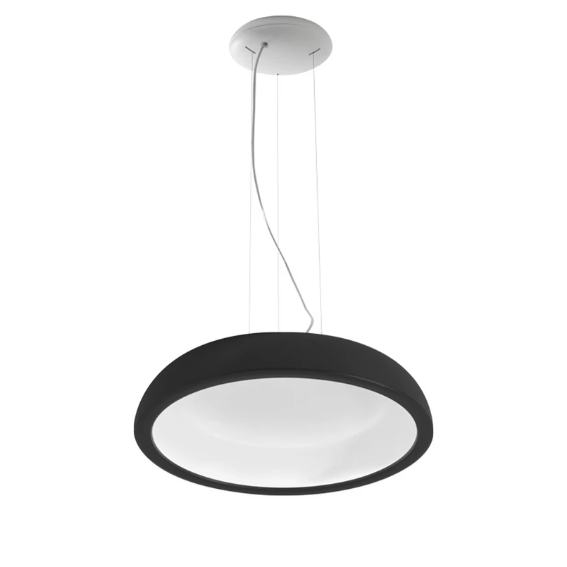 Una caratteristica particolare è il grande diffusore a forma di cupola, che riflette delicatamente la luce e allo stesso tempo nasconde completamente la fonte luminosa. Il risultato è un'illuminazione uniforme, morbida e priva di abbagliamento. La lampada a sospensione è dimmerabile esternamente tramite fase/sezione e viene prodotta in Italia, garanzia di eccellente lavorazione e qualità.