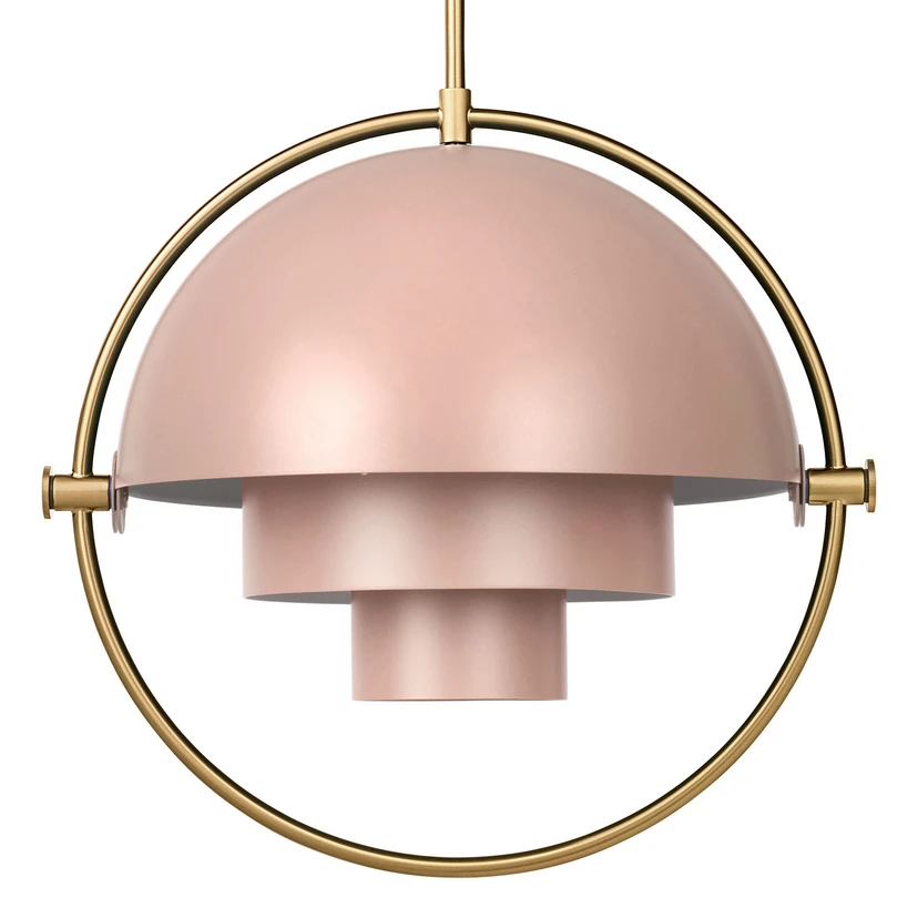 La lampada a Sospensione Multi-Lite in ottone/polvere di rosa incarna l'epoca d'oro del design danese, grazie alla sua caratteristica forma composta da due paralumi regolabili contrapposti. Questi permettono di creare un'espressione personale e un'ampia gamma di intensità luminose nell'ambiente. Ruotando i paralumi singolarmente, la lampada a Sospensione Multi-Lite può essere posizionata in vari modi, dirigendo la luce verso l'alto, verso il basso o in modo asimmetrico nell'ambiente per un'atmosfera più artistica.