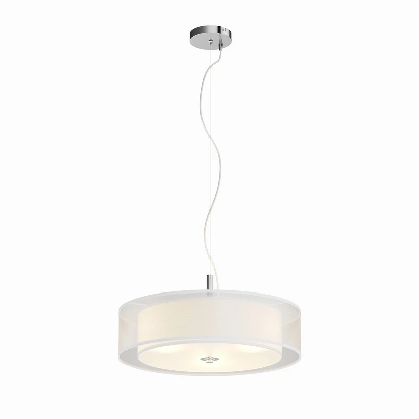 La lampada ha un totale di tre prese E27 che possono essere combinate con molti tipi di Lampadine. La luce penetra attraverso il tessuto chiaro e raggiunge tutti i lati della stanza. Poiché il paralume è chiuso nella parte inferiore, la luce ha un carattere morbido e diffuso che raggiunge tutti gli angoli della stanza in modo uniforme e non abbaglia.