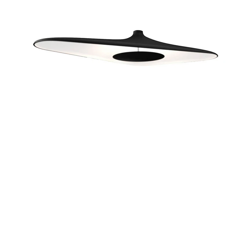 Soleil Noir di Luceplan è una lampada a Sospensione tecnologica e futuristica disegnata da Odile Decq.