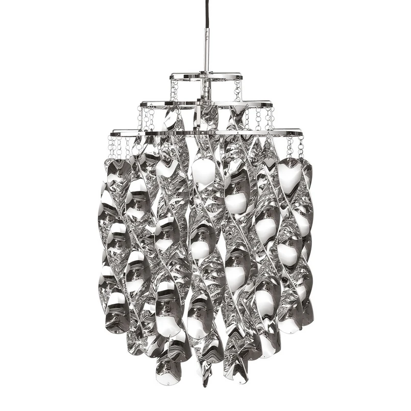 Il ciondolo è ornato da spirali che pendono con ordinata calma. Questo non solo crea una luce piacevolmente diffusa, ma riempie anche la stanza con un senso di sobria energia che contraddistingue l'opera d'arte Spiral Mini in argento.