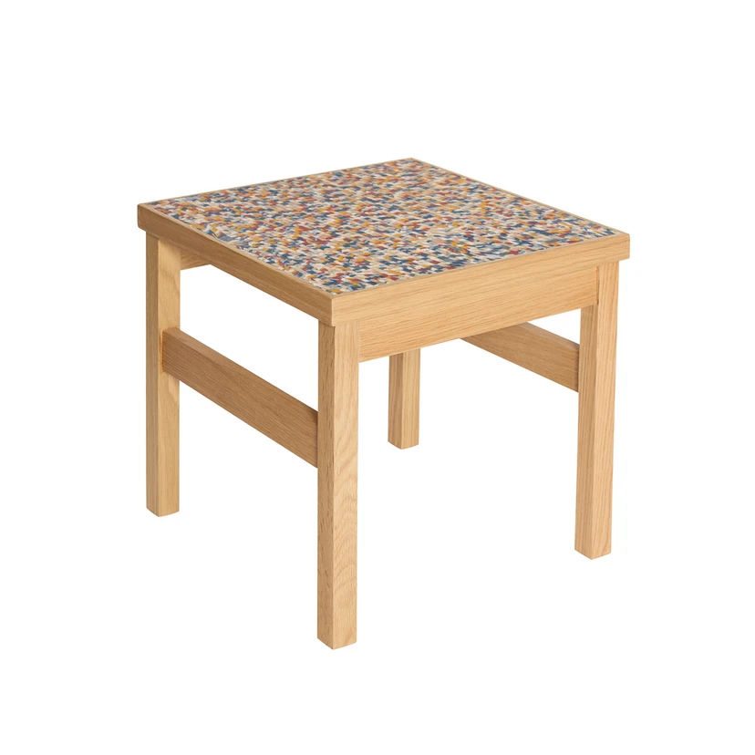 Il tavolino Confetti si presenta come un allegro inno ai colori e al design giocoso. Realizzato in legno con un'impiallacciatura di alta qualità, questo tavolino porta lo spirito dei coriandoli colorati direttamente nel vostro salotto. Il suo motivo scintillante attira immediatamente tutti gli sguardi, mentre le sue dimensioni pratiche rendono facile collocarlo ovunque sia necessario un tocco di allegria. Trasformate la vostra casa con un tavolino che unisce fascino funzionale e vivace maestria artigianale, affinché ogni giorno sia celebrato come una festa.